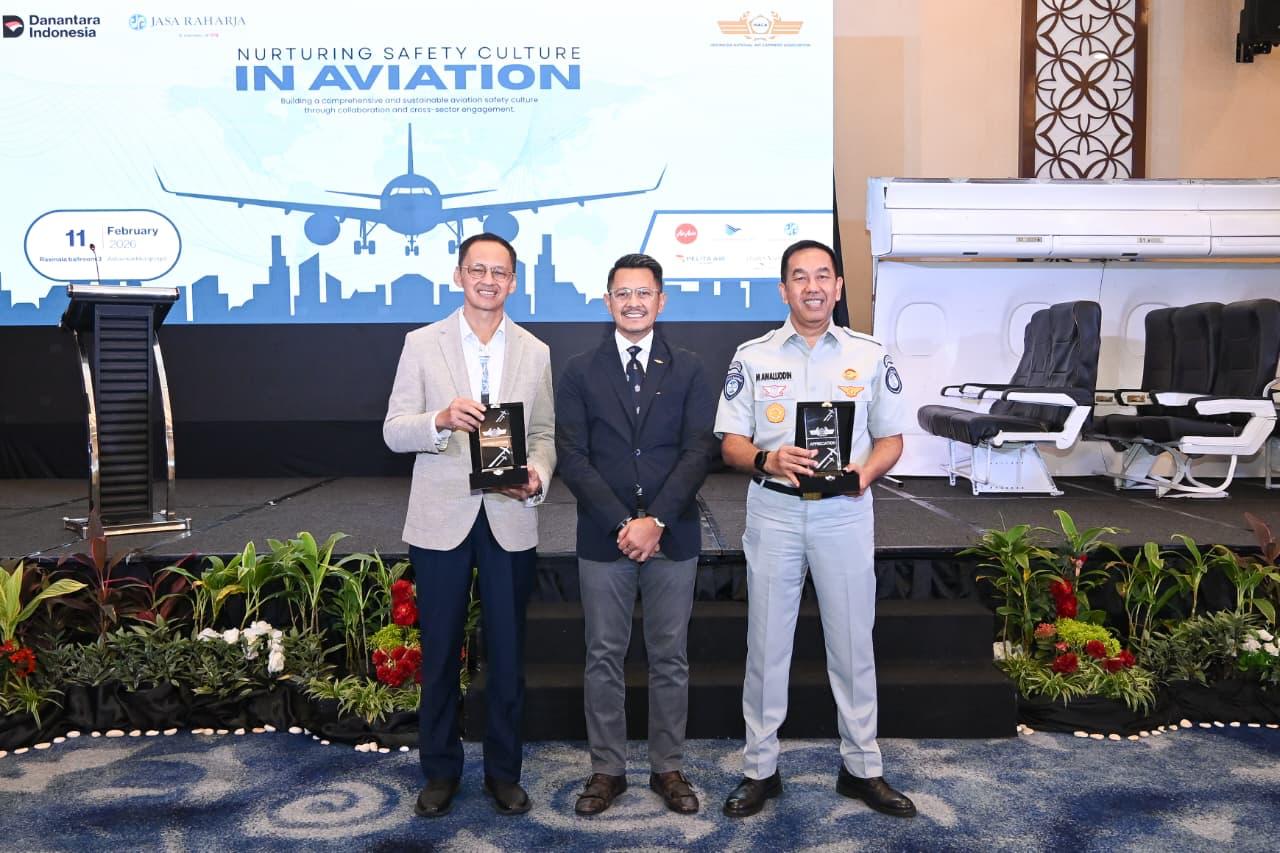 udara. Selain Direktur Utama Jasa Raharja Muhammad Awaluddin, hadir Ketua Umum INACA Denon Prawiraatmadja, Ketua KNKT Dr. Ir. Soerjanto Tjahjono, Direktur Kelaikudaraan dan Pengoperasian Pesawat Udara Kementerian Perhubungan RI Shokib Al Rokhman, Ketua Asosiasi Pengguna Jasa Angkutan Penerbangan Indonesia (APJAPI) Alvin Lie, dan perwakilan maskapai nasional.