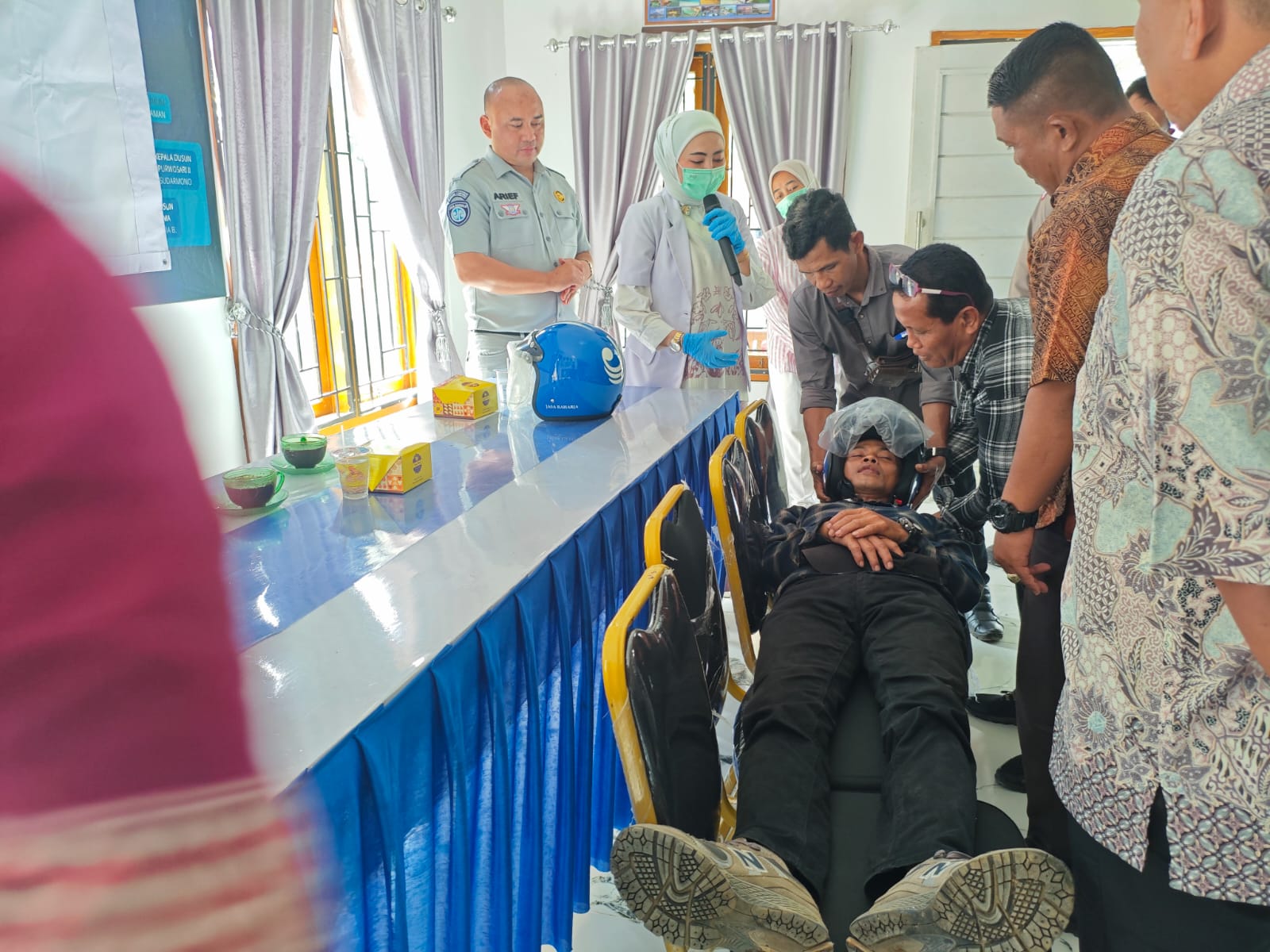 Adapun narasumber kegiatan ini berasal dari Satlantas Polres Lampung Selatan, Jasa Raharja Wilayah Lampung dan Tim Dokter. Kegiatan ini bertujuan untuk memberikan edukasi dan pelatihan penanganan kondisi darurat pada korban kecelakaan. Kegiatan ini dihadiri oleh warga masyarakat yang tinggal di sekitar daerah rawan laka lantas Kecamatan Natar Kabupaten Lampung Selatan.