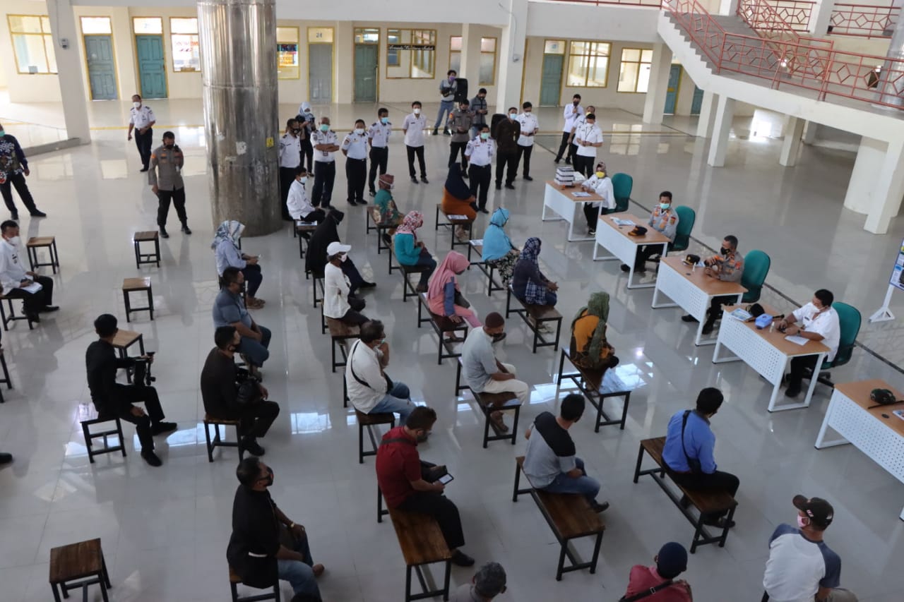 Di Terminal Rajabasa, Gubernur Arinal Djunaidi bersama Wakapolda Lampung, Dandim 0410/KBL, Kepala Dinas Perhubungan dan Kepala Dinas Kesehatan Provinsi Lampung melakukan pengarahan kepada Pelaku Usaha Angkutan / Keagenan dan Para Pedagang di Terminal Rajabasa.