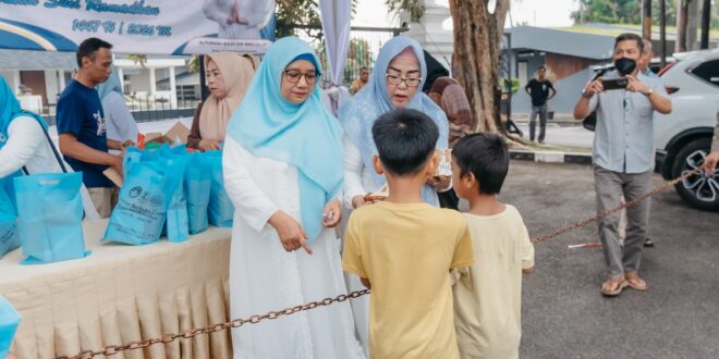 Bandar Lampung — Memasuki hari keenam pelaksanaan kegiatan berbagi takjil Ramadan 1447 Hijriah, Tim Penggerak PKK Provinsi Lampung bersama Dharma Wanita Persatuan (DWP) Provinsi Lampung kembali membagikan paket berbuka puasa kepada masyarakat di depan Mahan Agung, Minggu (01/03/2026).