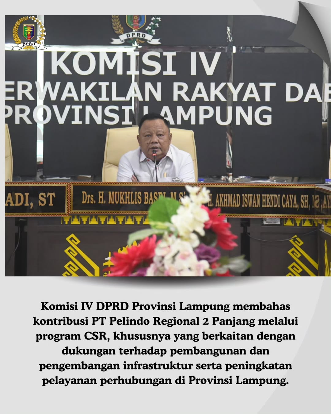 Dalam RDP tersebut, Komisi IV DPRD Provinsi Lampung membahas kontribusi PT Pelindo Regional 2 Panjang melalui program CSR, khususnya yang berkaitan dengan dukungan terhadap pembangunan dan pengembangan infrastruktur serta peningkatan pelayanan perhubungan di Provinsi Lampung.