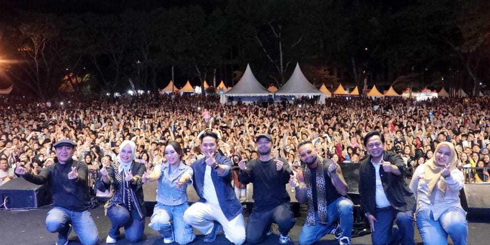 Lampu warna-warni memancar dari panggung utama, sorak-sorai pecah dari ribuan warga yang memadati Lapangan Korpri, Kalianda