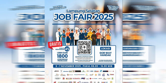 Lamsel, (mediamerdeka.co) – Pemerintah Kabupaten Lampung Selatan kembali membuka peluang besar bagi para pencari kerja melalui ajang Lampung Selatan Job Fair 2025, yang akan digelar pada 6-7 November 2025 di GOR Way Handak, Kalianda.