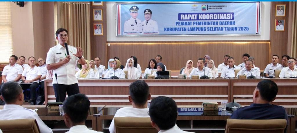 Lampung Selatan (MM) –-Pemerintah Kabupaten (Pemkab) Lampung Selatan menggelar rapat koordinasi bulanan di Aula Krakatau, kantor bupati setempat, Rabu (10/9/2025). Rapat yang biasanya hanya diikuti pejabat eselon II kali ini digelar dalam dua sesi, dengan melibatkan hingga pejabat eselon IV yang membidangi perencanaan.