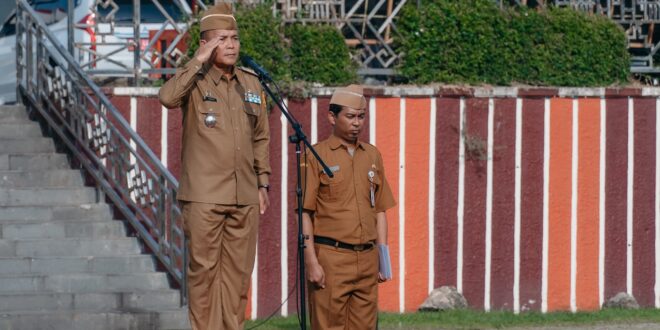 Bandar Lampung (MM) – Gubernur Lampung yang diwakili Staf Ahli bidang Pemerintahan, Hukum dan Politik, Achmad Saefulloh memimpin apel mingguan di lingkungan Sekretariat Daerah Provinsi Lampung, di Lapangan Korpri, Senin (13/10/2025).