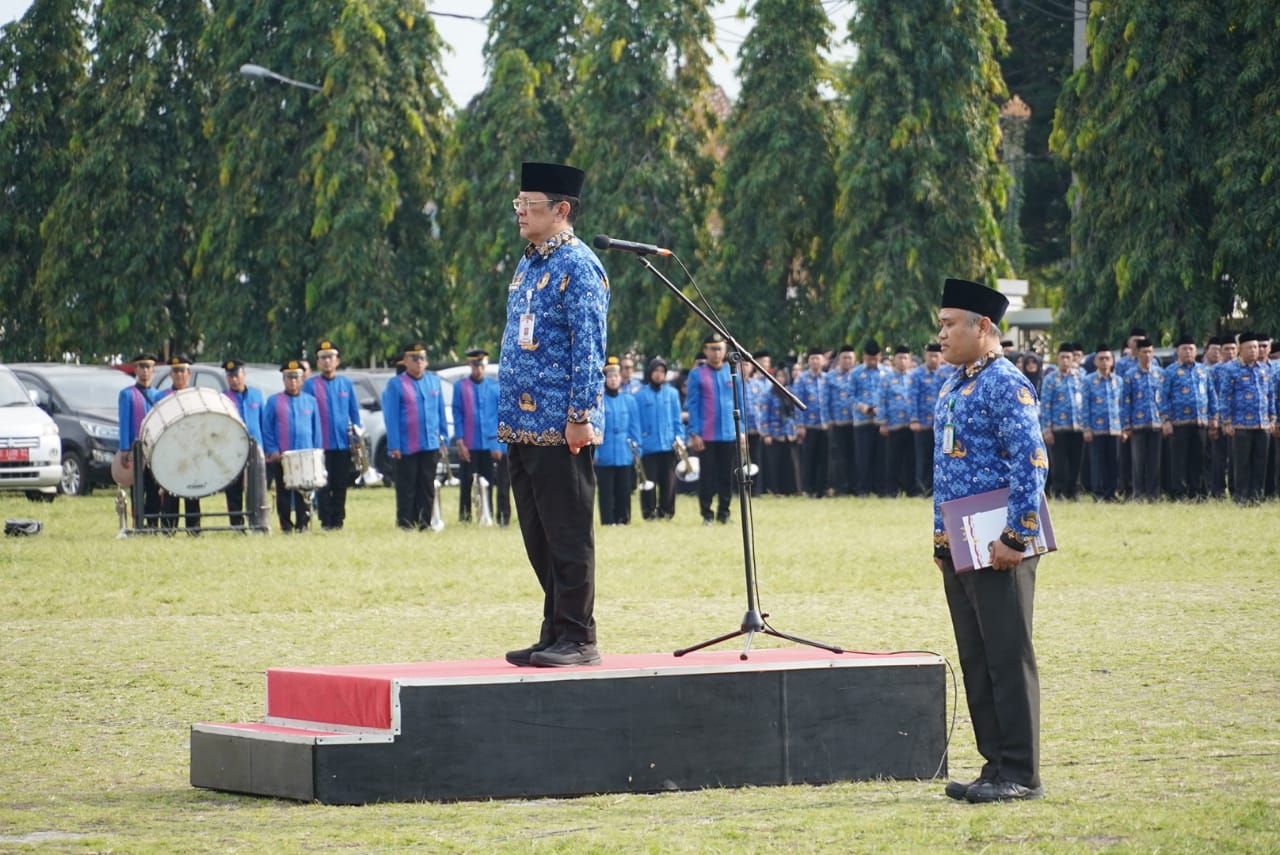 Bandar Lampung (MM) – Gubernur Lampung diwakili Asisten Pemerintahan dan Kesra menjadi pembina upacara bulanan di Lingkungan Pemerintah Provinsi Lampung, di Lapangan Korpri, Rabu (17/09/2025).