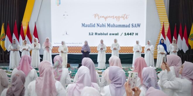 Bandar Lampung (MM) — Tim Penggerak PKK Provinsi Lampung menggelar peringatan Maulid Nabi Muhammad SAW di Mahan Agung, Jumat (19/09/2025). Kegiatan tersebut berlangsung khidmat diikuti berbagai jajaran organisasi wanita se-Provinsi Lampung dan sejumlah pejabat Pimpinan Tinggi Pratama dilingkungan Pemerintah Provinsi Lampung.