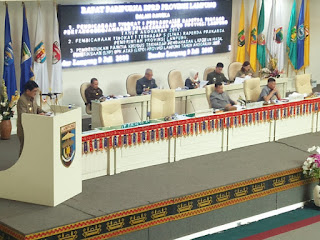 “Terimakasih dan apresiasi sebesar-besarnya karena Pemerintah Provinsi Lampung diberikan kesempatan untuk menyampaikan lima Raperda yang sangat prioritas dalam rangka mendukung pelaksanaan program percepatan pembangunan, kesejahteraan rakyat, dan peningkatan pendapatan asli daerah khususnya dibidang retribusi daerah, pengelolaan air tanah, penjaminan kredit daerah, penanaman modal, serta pencegahan dan penanggulangan narkotika,” ujar Hamartoni Ahadis.