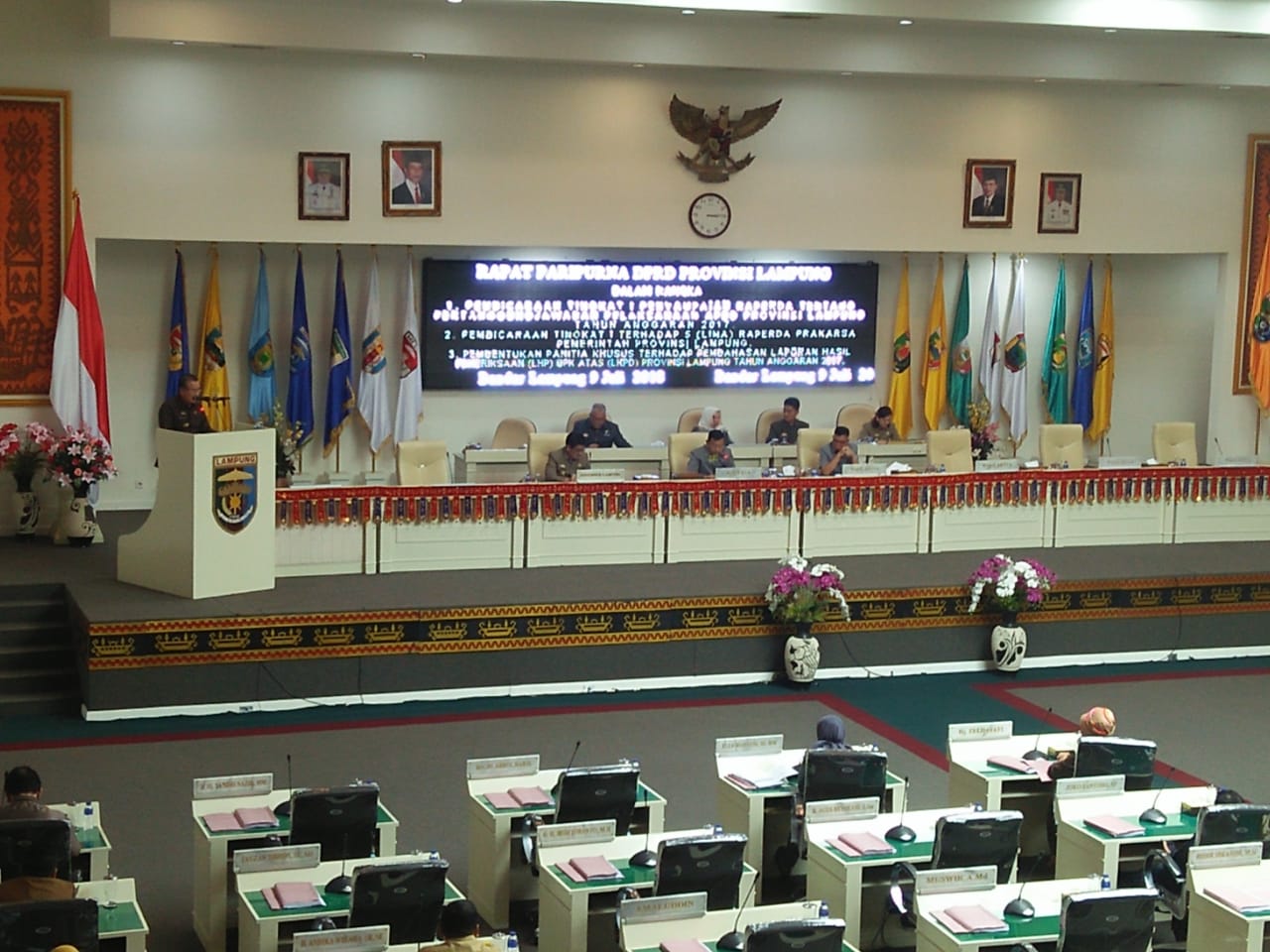 “Terimakasih dan apresiasi sebesar-besarnya karena Pemerintah Provinsi Lampung diberikan kesempatan untuk menyampaikan lima Raperda yang sangat prioritas dalam rangka mendukung pelaksanaan program percepatan pembangunan, kesejahteraan rakyat, dan peningkatan pendapatan asli daerah khususnya dibidang retribusi daerah, pengelolaan air tanah, penjaminan kredit daerah, penanaman modal, serta pencegahan dan penanggulangan narkotika,” ujar Hamartoni Ahadis.