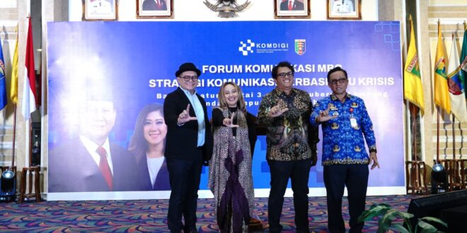BANDAR LAMPUNG (MM) — Pemerintah Provinsi Lampung bersinergi bersama Kementerian Komunikasi dan Digital (Kemenkomdigi) Republik Indonesia menggelar Forum Komunikasi MBG: Strategi Komunikasi Berbasis Isu Krisis di Balai Keratun, Lantai 3 Kantor Gubernur Lampung, Jumat (17/10/2025).