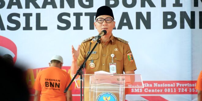 BANDARLAMPUNG–Pemerintah Provinsi Lampung bersama BNNP Lampung melakukan pemusnahkan barang bukti narkotika sebanyak 11.324,99 gram sabu, 870 gram ganja, serta 14 butir ekstasi hasil sitaan BNNP Lampung, kegiatan dilaksanakan di halaman Komplek Perkantoran Gubernur Lampung, Selasa (18/11/2025).