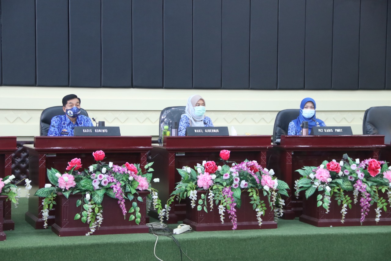 BANDAR LAMPUNG — Wakil Gubernur Lampung, Chusnunia, membuka acara Bimbingan Teknis Program Smart Village Provinsi Lampung Tahun 2020, di Gedung Pusiban, Kamis (17/09).