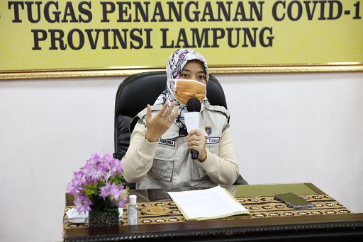 Bandarlampung, (Mediamerdeka.co)— Wakil Gubernur Lampung Chusnunia Chalim (Nunik) menyampaikan informasi terkait libur sekolah awal Puasa Ramadhan dan menghadapi Hari Raya Idul Fitri 1441 Hijriah, di Posko Satgas Terpadu Gugus Tugas Penanganan Covid-19, Balai Keratun, Kompleks Kantor Gubernur, Kamis (16/4/2020).
