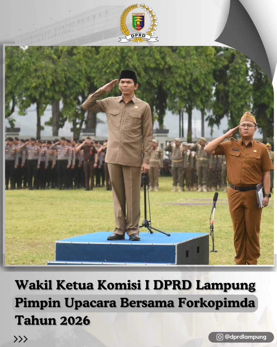 Bandar Lampung,-Wakil Ketua Komisi I DPRD Provinsi Lampung, Ade Utami Ibnu, S.E., selaku Pembina Upacara, memimpin secara langsung Upacara Bersama Forum Komunikasi Pimpinan Daerah (Forkopimda) Provinsi Lampung Tahun 2026 yang berlangsung khidmat di Lapangan Korpri, Kompleks Pemerintah Provinsi Lampung, Senin (2/2/2026).